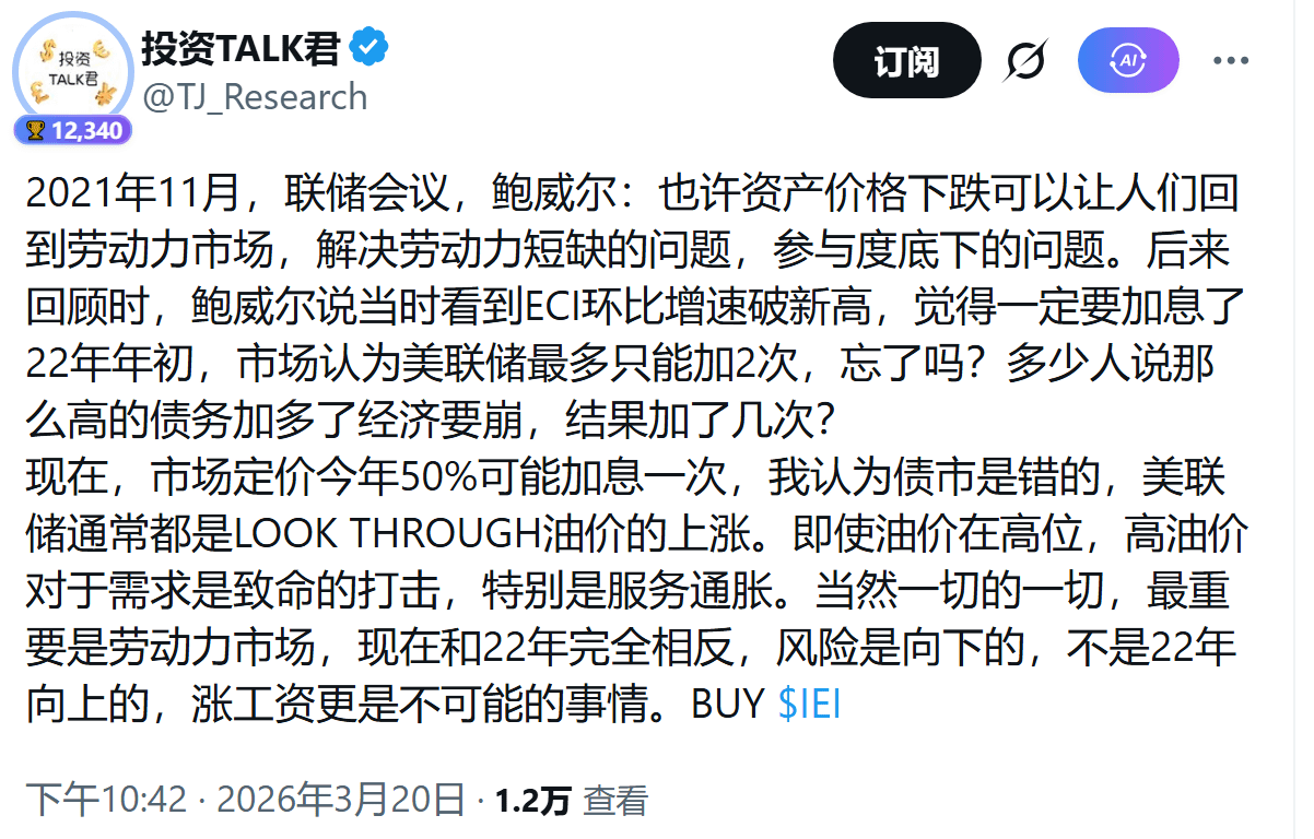 所以Talk老师认为当下是和2021~2022年相反的环境。当时没有衰退信号,核心问题是通胀。