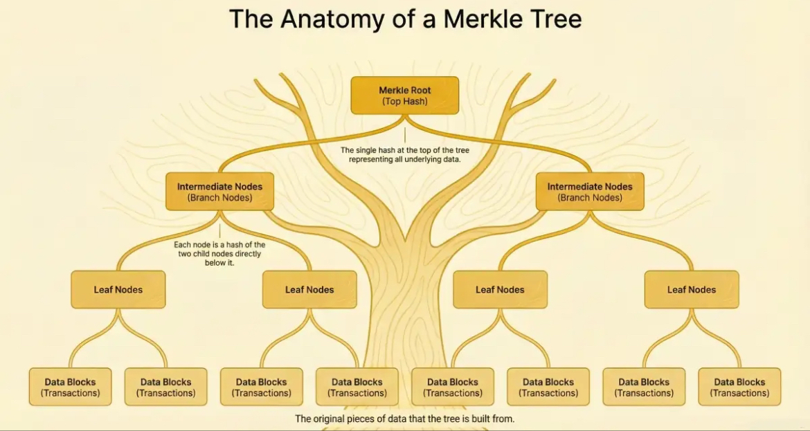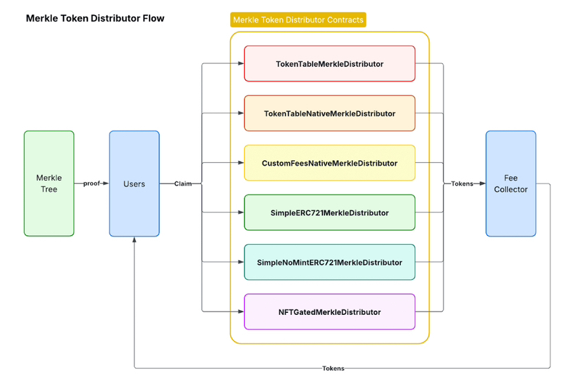 The Merkle tree itself: root hash proves the whole set, individual proofs let users claim without revealing everything. Scalable, private, and trustless core to handling large eligibility lists.