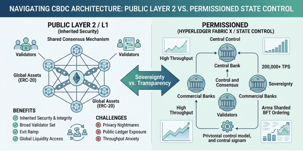 I’ve been watching the architectural arms race in the sovereign crypto space for a while now and it’s finally hitting that point where the whiteboards are being traded in for cold hard infrastructure. When I look at the security models being pitched to central banks right now I see a classic tension between the cypherpunk dream of the public commons and the paranoid reality of state control. The pitch for building on Layer 2 or existing smart contract chains is seductive because you get to inherit a validator set that’s already been through the wars. You’re essentially hitching your national wagon to a network that has survived every exploit and stress test the internet could throw at it which is a hell of a lot better than trying to spin up a solo consensus mechanism in a basement. It gives you this baked-in integrity where the broad network verifies your state transitions and users have a clear exit ramp if things go sideways but let's be honest about the trade offs here.