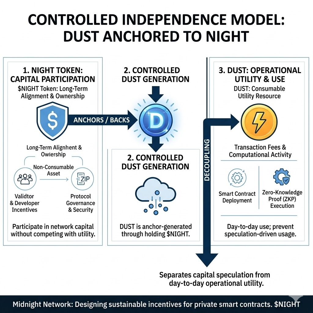 When usage (DUST) is decoupled from ownership and governance (NIGHT), participation becomes less loaded. You’re not constantly calculating opportunity cost. You’re not hesitating because interaction might mean giving up exposure.