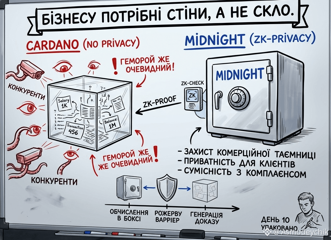 Ідея «абсолютної прозорості» блокчейну — це утопія, яка розбивається об реальність у перший же день. Мене тут зачепило інше: ми роками пишалися тим, що в Cardano видно все, але для реальної компанії це виглядає як фінансове самогубство.