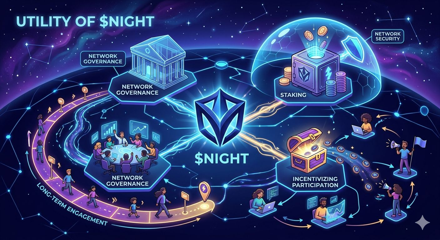 A utilidade de $NIGHT se estende além de simplesmente ser um meio de troca. Ela desempenha um papel crítico na governança da rede, staking e incentivando a participação. Usuários que possuem e fazem staking de $NIGHT podem contribuir para a segurança da rede e a tomada de decisões, promovendo um ecossistema mais descentralizado e orientado pela comunidade. Isso incentiva o engajamento a longo prazo e alinha os interesses dos participantes com o sucesso geral da rede.