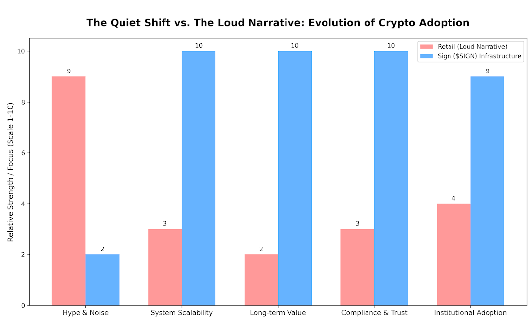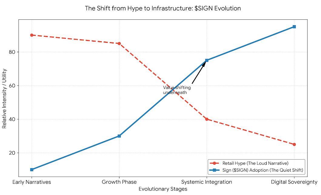 The actual question is not whether such projects as Sign are going to trend tomorrow. Whether or not they would ever become indispensable with time remains to be seen. There can be no shift on at this moment, since there is the other value is relocating underneath but the attention is still on the surface. And SIGN is already up in that stratum that has not been fully attended to by a great number of people.