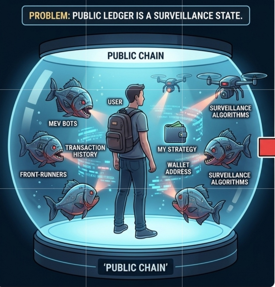Senti isso pessoalmente. Você encontra uma joia, seu instinto diz que está subvalorizada, mas você hesita. Você sabe que no segundo em que se mover, os "sanguessugas do alpha" verão seu endereço de carteira e vão atacar. Isso não é um mercado. Isso é um estado de vigilância com uma interface melhor. Quando cada erro está gravado em pedra para sempre, você perde o direito de estar errado, de mudar de ideia ou de ter uma estratégia. E sem segredos, não há estratégia. Há apenas ruído.
