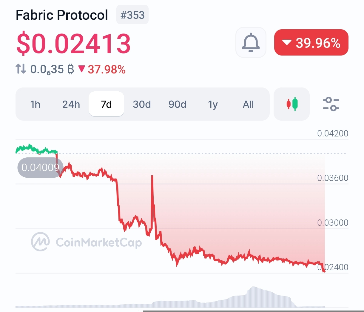 ROBO, o token nativo do Fabric Protocol, frequentemente está fazendo manchetes. O token garantiu listagens nas principais exchanges de criptomoedas como Binance, Coinbase e Bitget. Embora os KOLs estejam promovendo massivamente o ativo, seu desempenho nos últimos sete dias tem sido extremamente decepcionante, com o token caindo aproximadamente 40%.