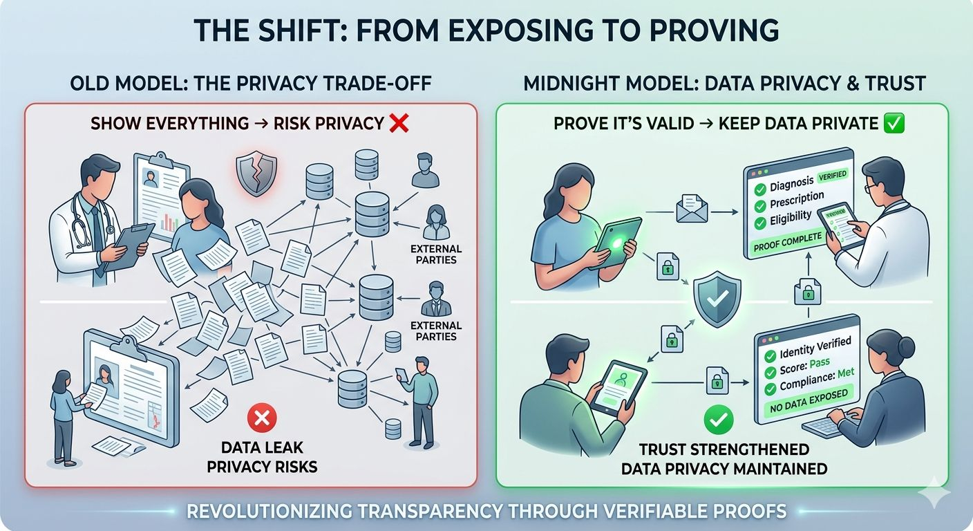 Instead of asking systems to reveal everything, Midnight focuses on something smarter: proving that something is true without exposing the data behind it.