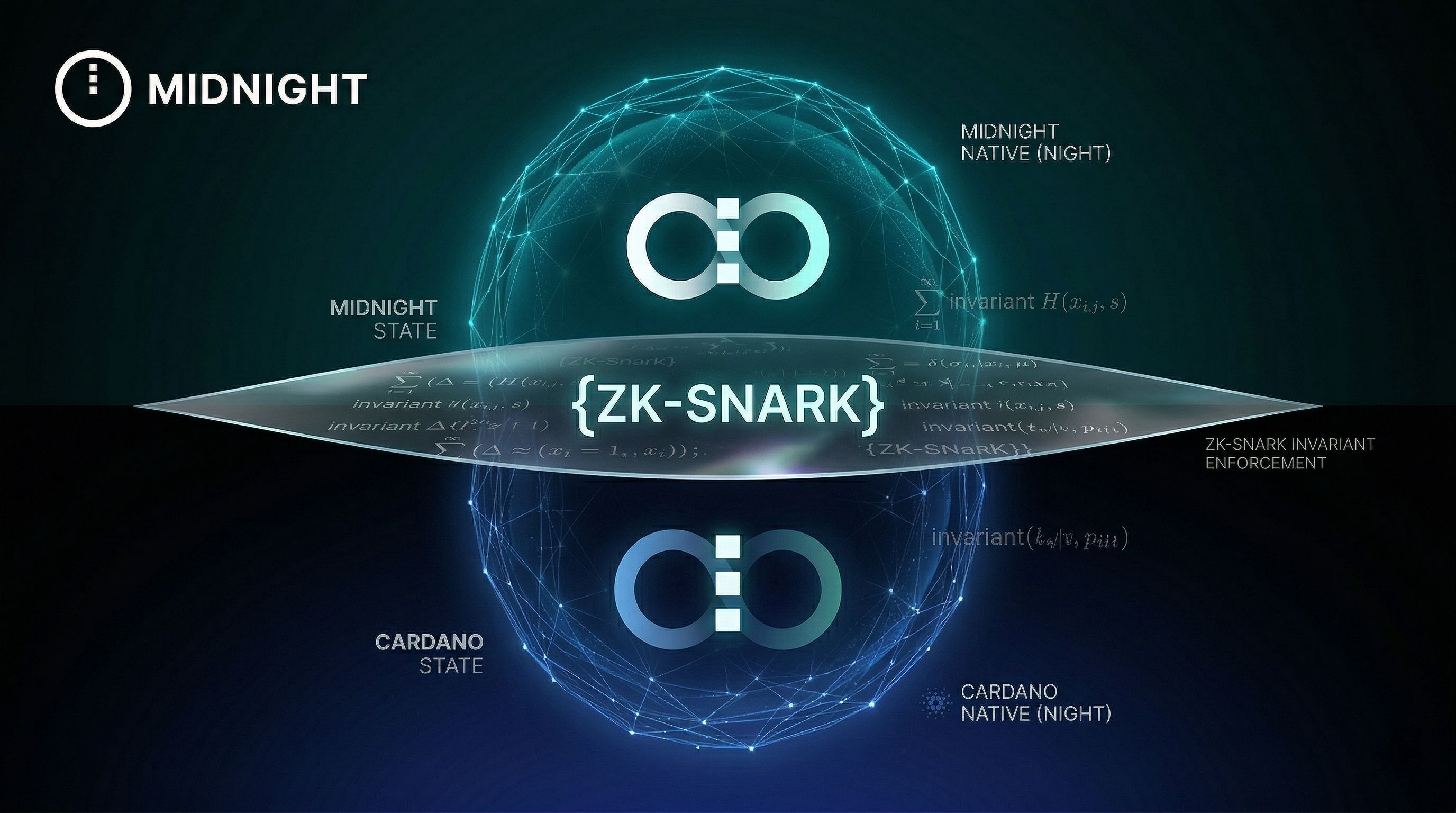A NOITE de Midnight é diferente. Mesmo token. Duas representações nativas. Uma no Cardano como CNA. Uma no Midnight como token nativo. O protocolo impõe a invariância: token desbloqueado no Cardano significa bloqueado no Midnight, e vice-versa. Sem embalagem. Sem custódia de terceiros. Apenas matemática.