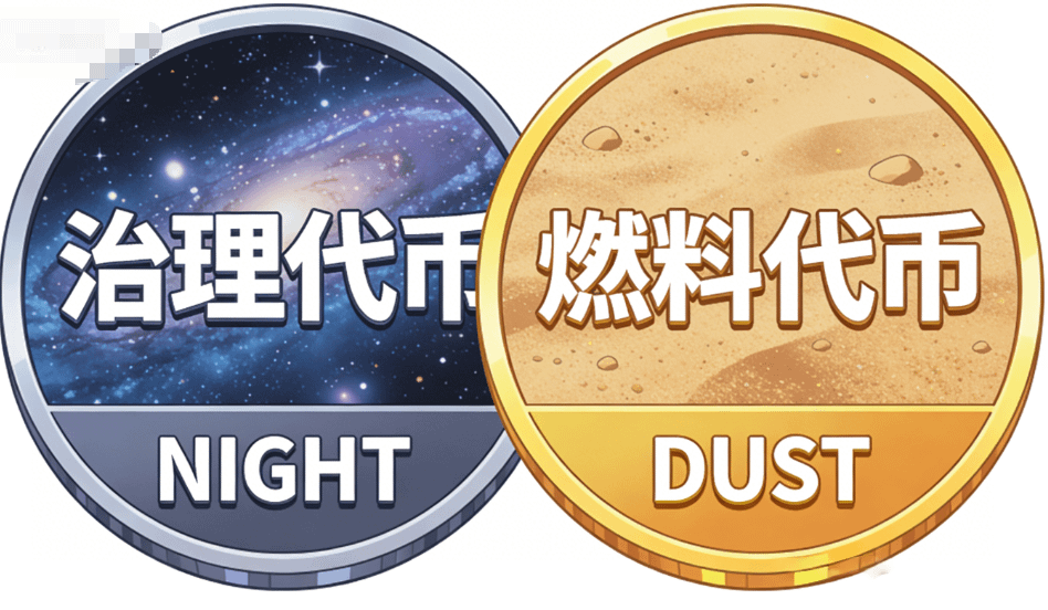 再说说它的双代币模型NIGHT+DUST。我一开始也没搞懂,为啥要搞两个币?后来看明白了,这是合规层面的神操作。NIGHT是治理代币,用来质押、投票,是价值资产;DUST是燃料,只能用来付Gas费,不可转让,还能自动衰减。这意味着什么?DUST没法被炒作,所有隐私交易的成本是真实、可控的,不会因为市场FOMO就暴涨暴跌。
