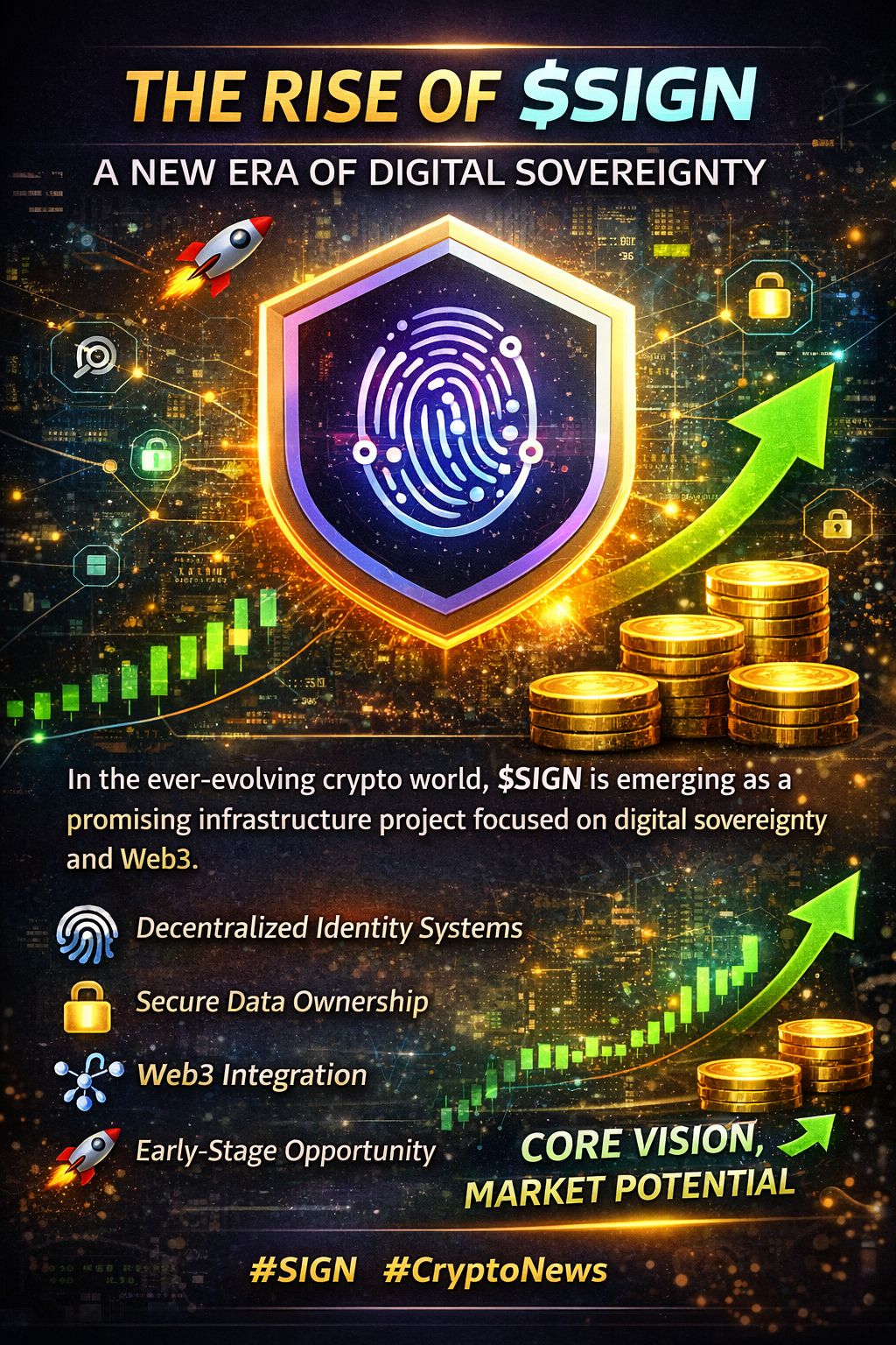 Built on blockchain technology, $SIGN aims to provide secure, transparent, and user-centric solutions for digital identity management. This makes it highly relevant in the era of Web3, where decentralization and privacy are becoming top priorities. The project is gaining attention in crypto communities due to its strong vision and alignment with future internet trends.