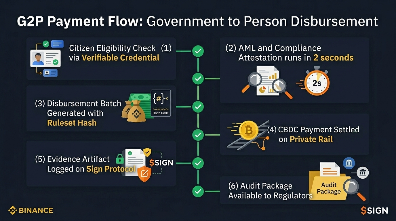 Para a situação do Hassii especificamente, o fluxo de desembolso G2P (governo para pessoa) no Sign é fascinante. Imagine se seu empregador pagasse em um sistema CBDC e seu salário fosse automaticamente direcionado para sua carteira verificada após uma verificação de conformidade que levava 2 segundos e era registrada como uma atestação criptográfica. Ele poderia então converter esse CBDC em uma stablecoin na rede pública e