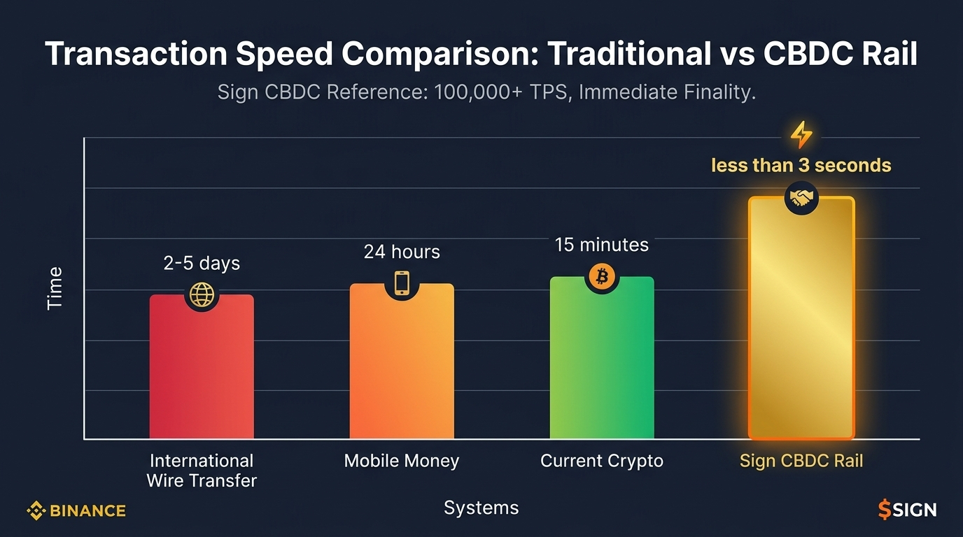 O Sistema de Novo Dinheiro S.I.G.N. não se trata apenas de CBDCs como um conceito. Trata-se de construir uma trilha de dinheiro digital soberano completa que os governos realmente possam implantar com controles de privacidade reais, trilhas de auditoria reais e interoperabilidade real. E as especificações técnicas não são promessas vagas de whitepapers. Elas são concretas. A arquitetura de referência de CBDC em blockchain privada suporta 100.000 transações por segundo.