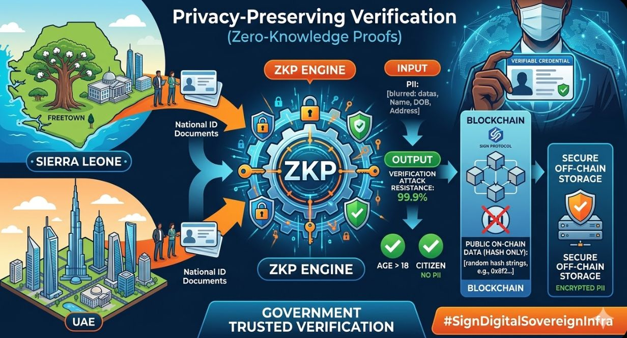 Privacy-Preserving Verification: Through advanced ZKP (Zero-Knowledge Proof) integration, the protocol allows governments—such as recent deployments in Sierra Leone and the UAE—to verify national identity and credentials without ever exposing sensitive PII (Personally Identifiable Information) on-chain.