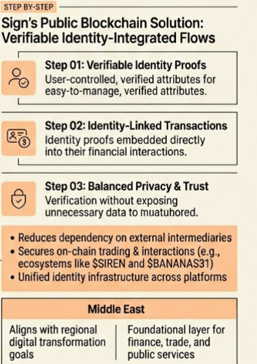I remember a phase where I kept chasing narratives that sounded structurally important but never translated into actual usage. Digital identity was one of them. The idea felt obvious. If users controlled their own data, platforms would naturally shift toward that model. At the time I believed the concept itself was enough to drive adoption. But when I started looking deeper into how these systems were implemented, I noticed something uncomfortable. Most solutions either introduced hidden central points of control or required too much effort from users to function in practice. That experience changed how I evaluate these projects. Now I pay more attention to whether a system can operate quietly in the background without forcing users to think about it. That shift in thinking is why Sign’s approach caught my attention. Not because digital identity is a new concept, but because it pushes a more grounded question. What happens when identity is not just a feature but a core layer of financial infrastructure. More specifically, can identity become embedded in how digital currency systems operate across regions that are actively building new economic frameworks. So the real question becomes whether this model can move beyond isolated use cases and support real economic activity at scale. From a structural perspective, Sign’s public blockchain approach is built around verifiable identity integrated directly into transaction flows.