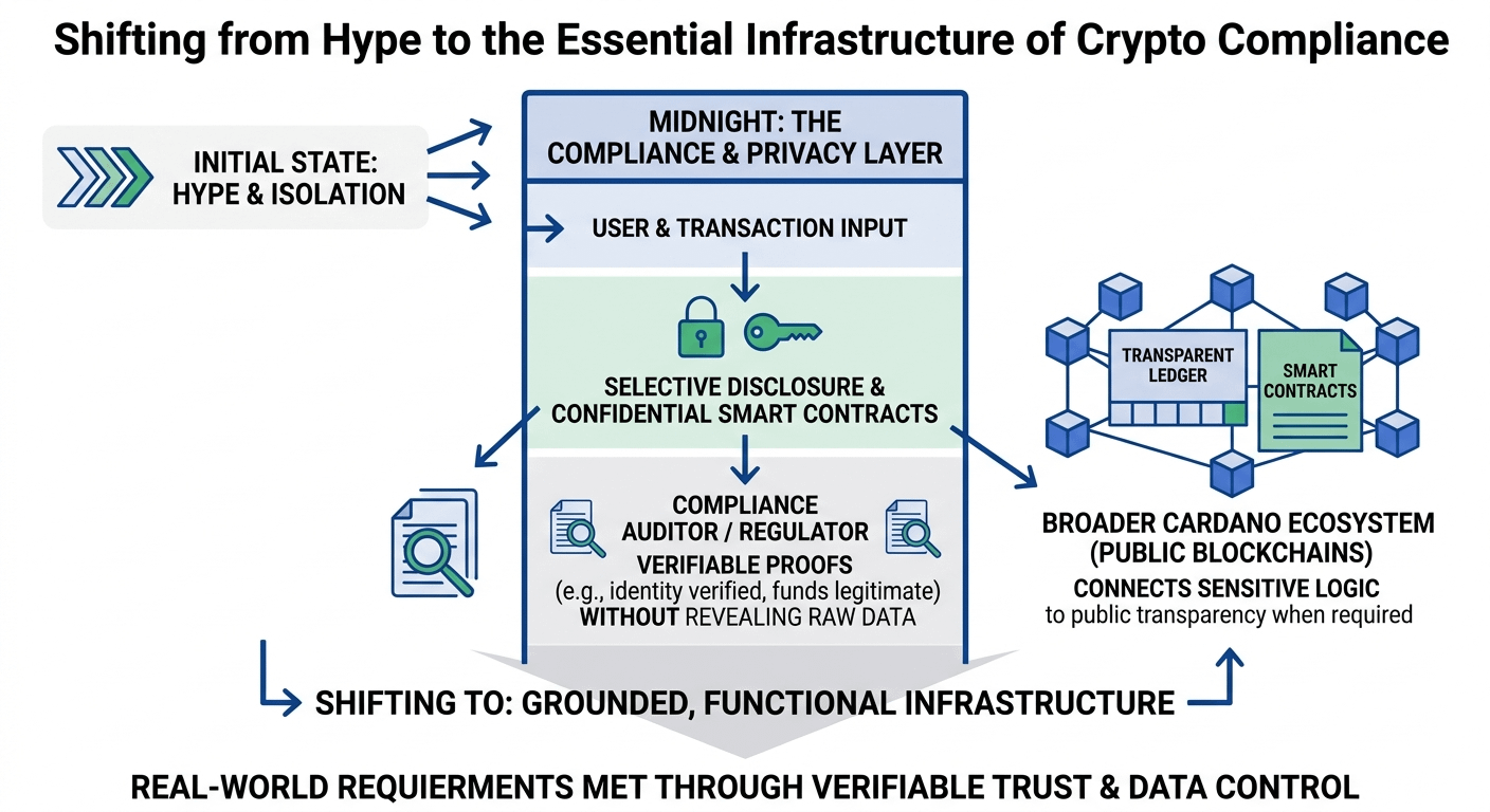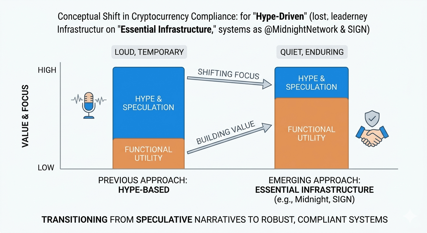 I’ve been looking closely at how @MidnightNetwork is designed, and somewhere in the middle of reading through its documentation, I caught myself thinking about something I didn’t expect how projects like SIGN might slowly be moving away from hype and into something much more grounded: the quiet layer of compliance infrastructure.
