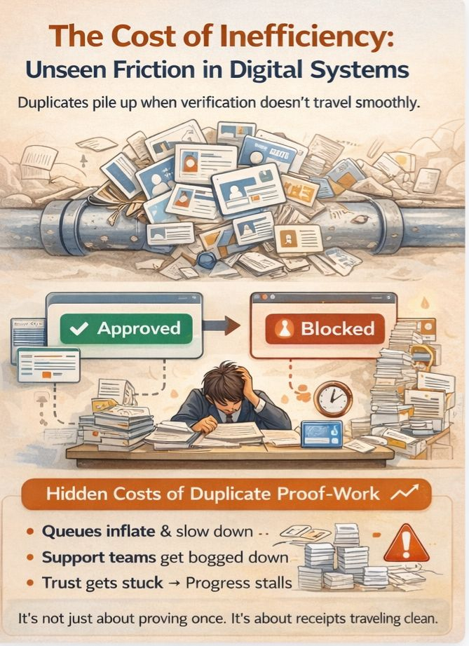 That was the moment I stopped treating it like a temporary glitch. A much bigger, more frustrating question started bothering me: When one institution accepts a fact about a business, can the next step in the chain actually inherit that trust? Or does every new portal quietly reset your progress back to zero?