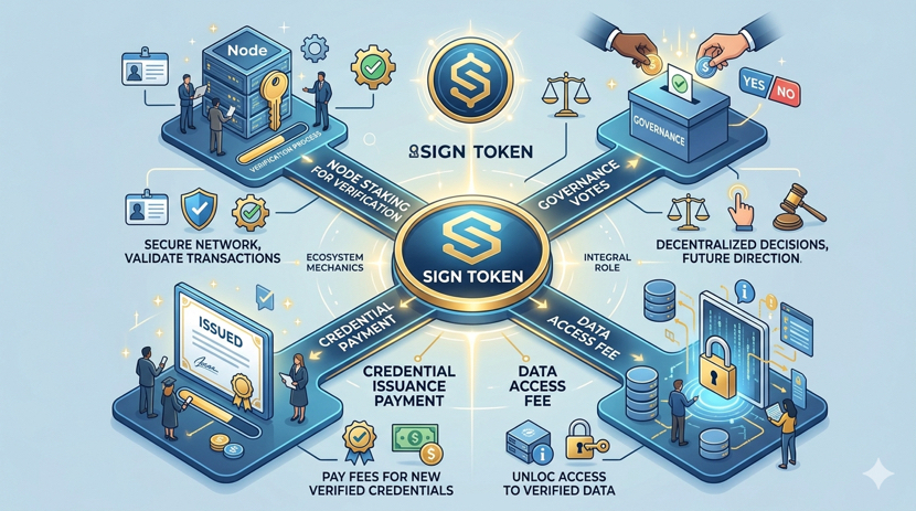 The SIGN token is like the oil that makes this system work. It helps to verify identities and facilitates payments for issuing credentials. It also helps to make sure that the system is governed in a way.