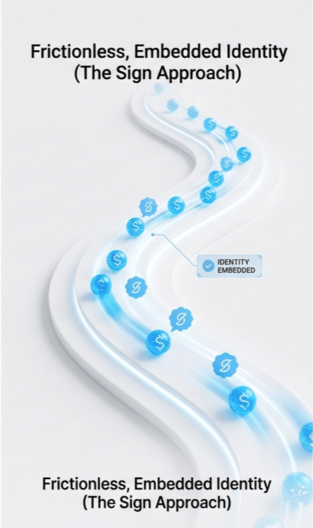 Estruturalmente, a abordagem do Sign é diferente. Não trata a identidade como algo opcional que os aplicativos podem conectar. Constrói a identidade diretamente nos fluxos de transação.