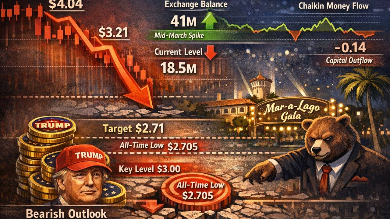 Desde o pico em 13/3 em torno de 4,04 USD, o TRUMP caiu 20,61% para o nível atual. Os modelos de medição subsequentes indicam a possibilidade de uma nova queda de cerca de 15,76%, levando o preço para a faixa de 2,71 USD — perto do fundo histórico de 2,705 USD.