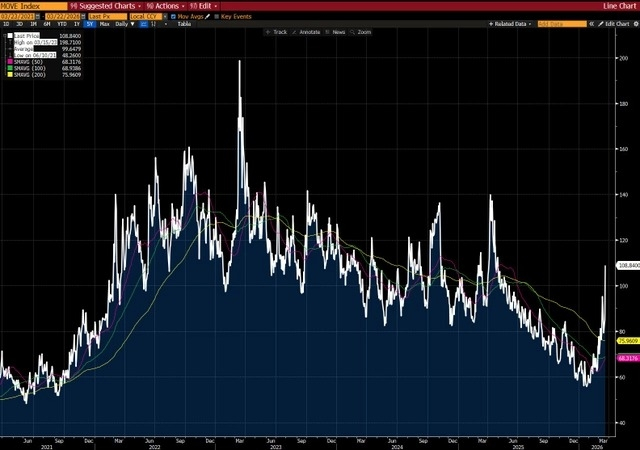 A higher MOVE index means there is more uncertainty about where interest rates are heading. Historically, this kind of uncertainty often comes before bigger swings in financial markets.