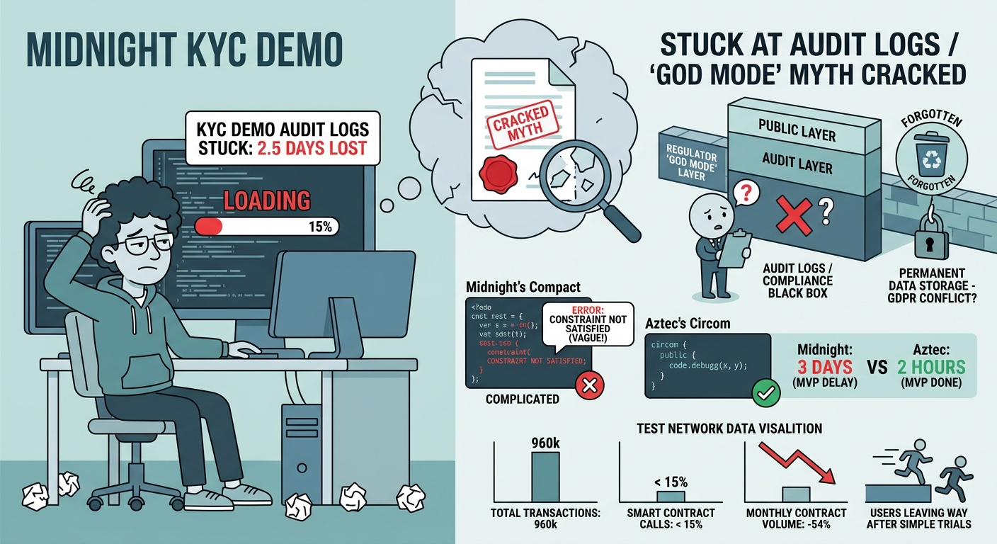 我去@MidnightNetwork 跑KYC Demo,本来就想戳破他们那个“监管上帝视角”的牛皮。结果代码敲完,审计日志对接直接把我坑了整整两天半,进度条卡死在那儿一动不动。