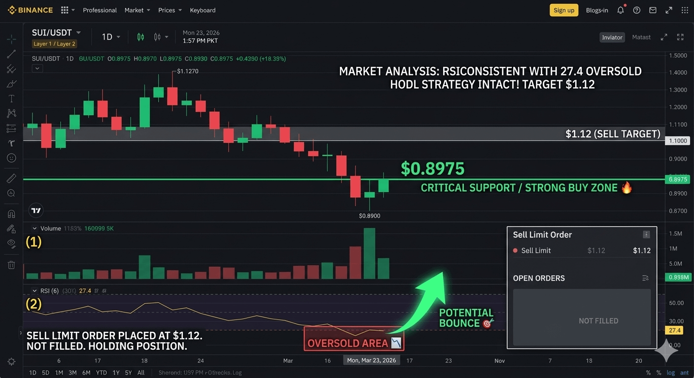 Market volatility is the price we pay for massive gains. $SUI is currently retesting the lower support levels near $0.89, with the RSI hitting an oversold zone at 27.4.