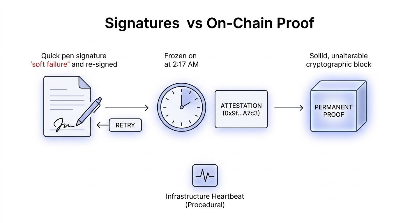 Se conseguirmos substituir assinaturas por prova imutável, então não estamos apenas atualizando a infraestrutura. Estamos redefinindo como direitos, identidade e acordos existem através de fronteiras e sistemas. O que ainda não consigo resolver completamente é quando a verdade se torna algo que não pode ser alterado, quem tem o direito de decidir o que é verdade em primeiro lugar e que recurso existe quando essa decisão está errada?