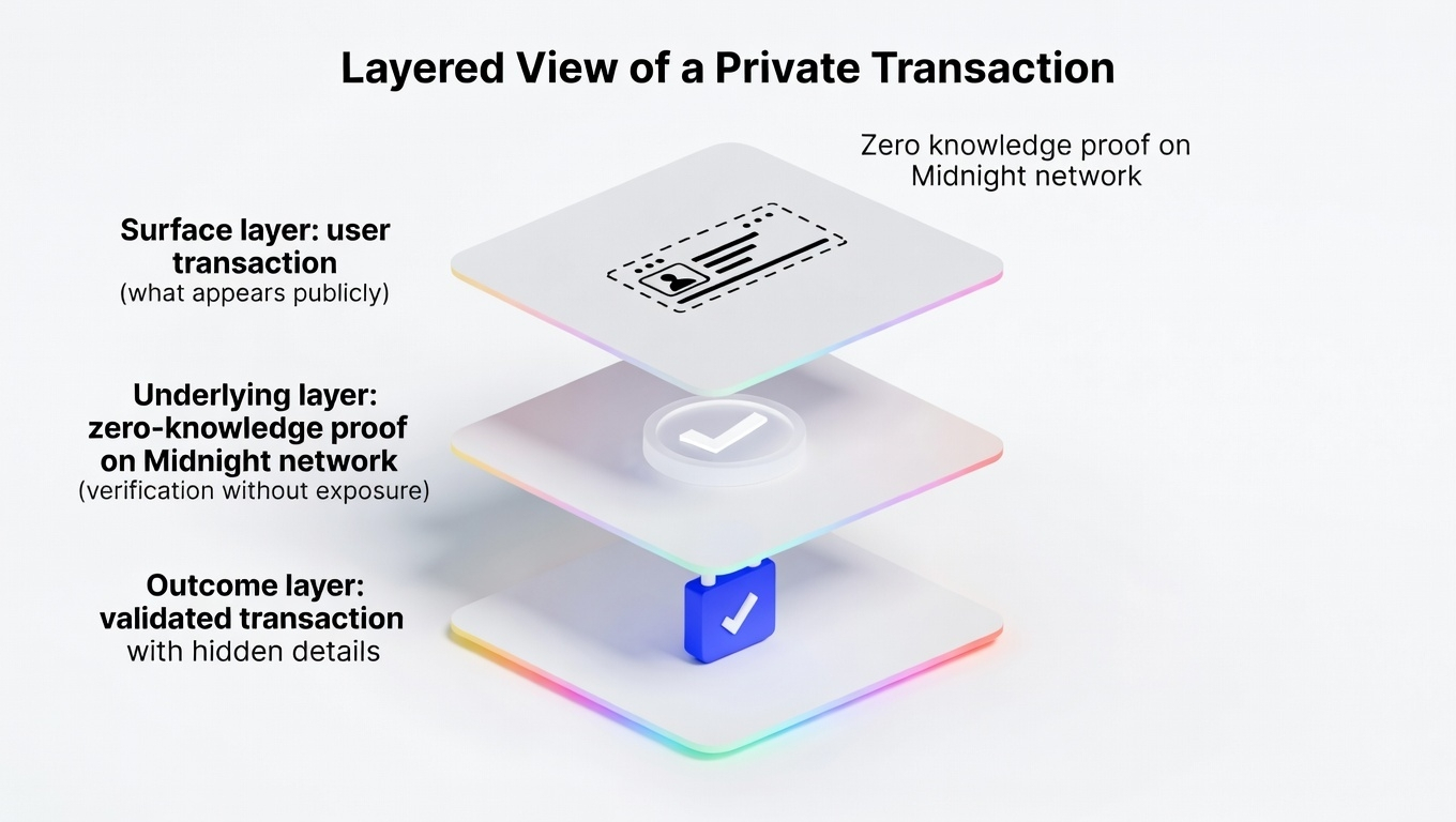 Midnight seems to be taking a different route, and what struck me when I first looked at it is how it treats privacy as something selective rather than absolute. On the surface, it allows transactions or data to be shielded. Underneath, it uses zero-knowledge proofs, which basically let you prove something is true without revealing the underlying data. That might sound abstract, but think of it like showing you passed a background check without handing over your entire history.
