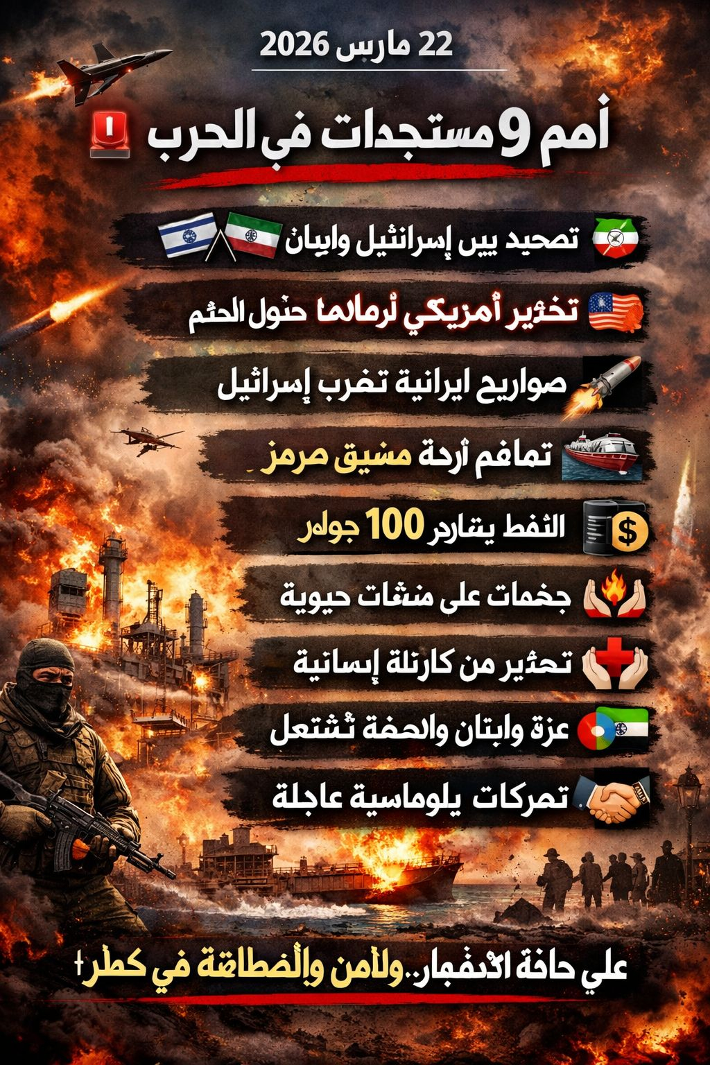 🚨 As 9 principais atualizações sobre a guerra até 22 de março de 2026: