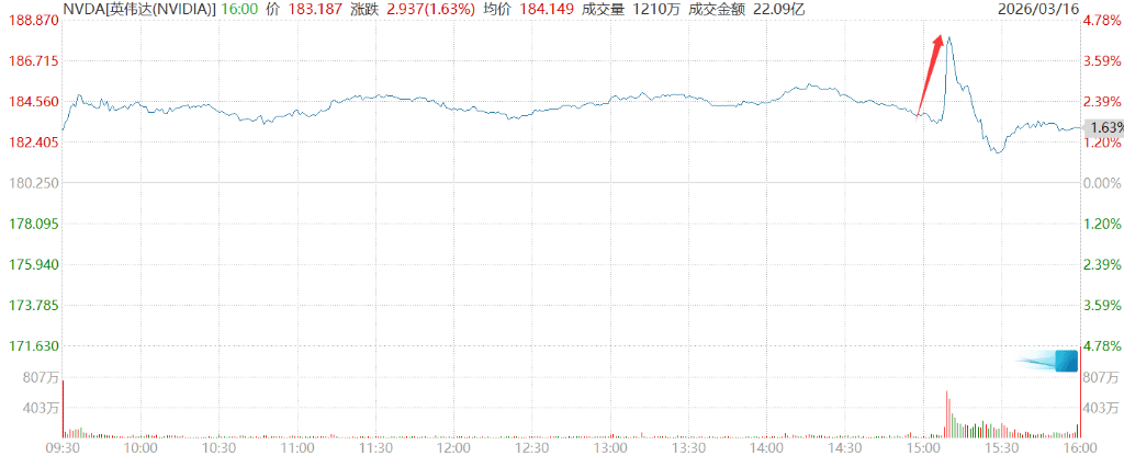 黄仁勋的万亿预期一度推动英伟达股价涨超 4.3%。