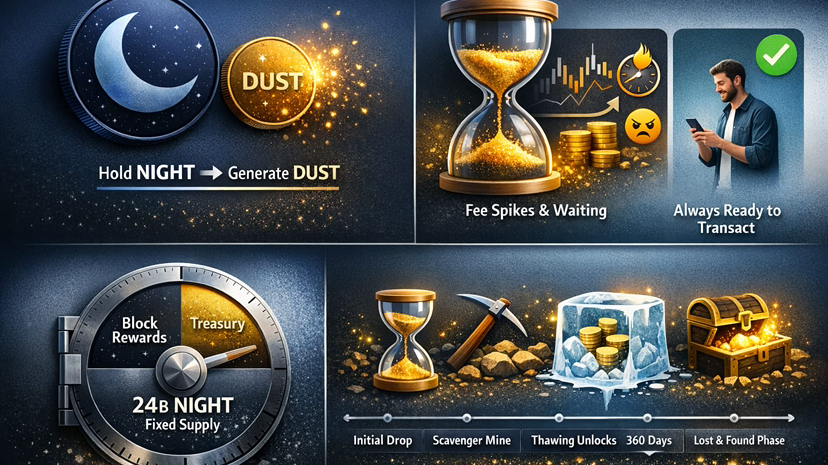 Há um suprimento fixo de NIGHT — 24 bilhões — e as emissões vêm de um pool de reserva, não de inflação sem fim.