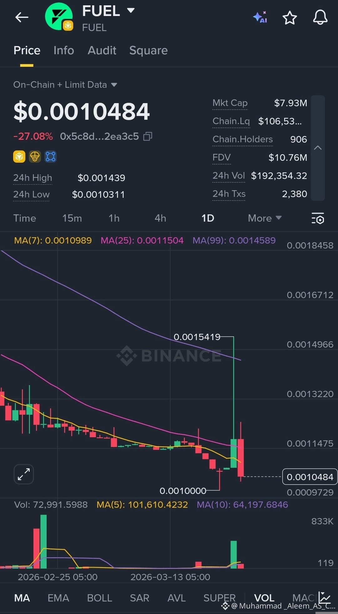 Technically, $FUEL is testing the $0.00125 resistance. A clean break and daily close above this level will trigger a "Gamma Squeeze" towards the $0.0065+ macro zone, opening the doors for a parabolic rally to reclaim its Post-Launch Highs as the modular narrative takes center stage in Q2! 📈💥