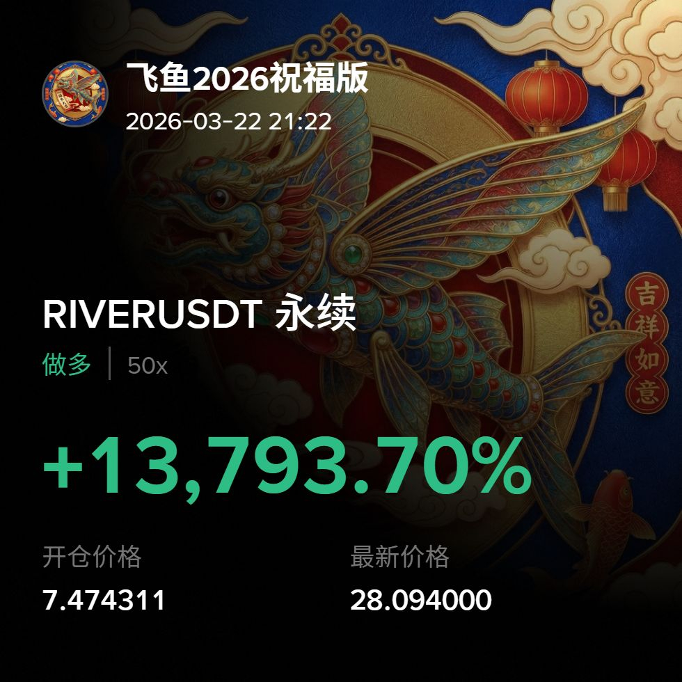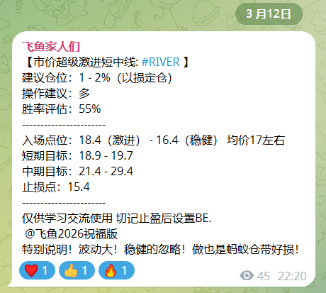 现在所有的单子全部设置保本!没机会就等待,有机会就吃波大的!! $RIVER