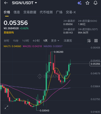 特别是在目前地缘压力下,SIGN能够在这种环境下逆势上涨,价格来到0.053美元,连续五天收阳,但这不是终点,这只是刚启动,目前市值不到8000万,较历史高点差不多跌了70%,我觉得是严重低估,等待Attsstation跑通的那一天,上限会很高