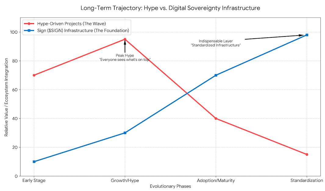 Why? Infrastructure does not make its presence felt until it is too late. Early days actually did not make people consider internet protocols. But to day all things are run on them. Quietly. Reliably. Indispensably. That is what Sign is drifting towards.🙃
