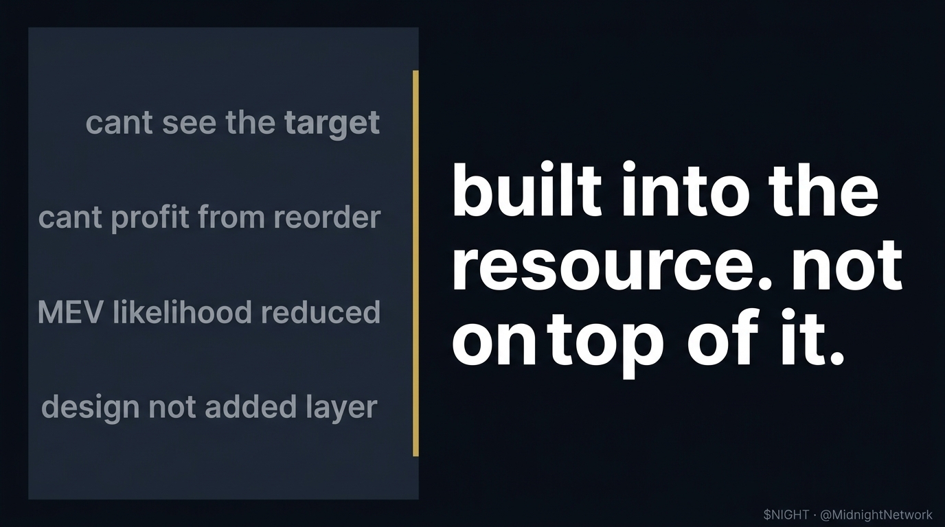 Midnight's DUST resource has a property specifically noted in the whitepaper as MEV-resistance. and the mechanism behind it is straightforward once you understand how DUST works.