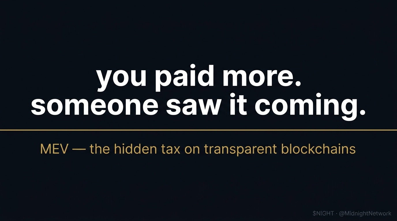 It's a structural problem in transparent blockchains. when every transaction is visible in the mempool before it's included in a block, sophisticated actors can read that data and act on it. they can see that you're about to buy a large amount of a token, buy it first, sell it to you at a higher price, and pocket the difference. you pay more. they profit. the block producer may take a cut too. none of this is illegal — it's just a consequence of full transaction transparency.