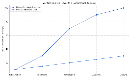 Há um tempo, tive que verificar um documento que deveria ter sido simples. Não foi a tarefa em si que tomou tempo—foi provar que a tarefa já havia sido feita. Um escritório me disse para pegar um carimbo de outro. Esse escritório queria uma assinatura de um terceiro. No final, não estava lidando mais com a ação original—estava navegando em uma teia de provas. E o que mais me impressionou foi isso: o sistema não lutava para fazer as coisas, lutava para provar as coisas.