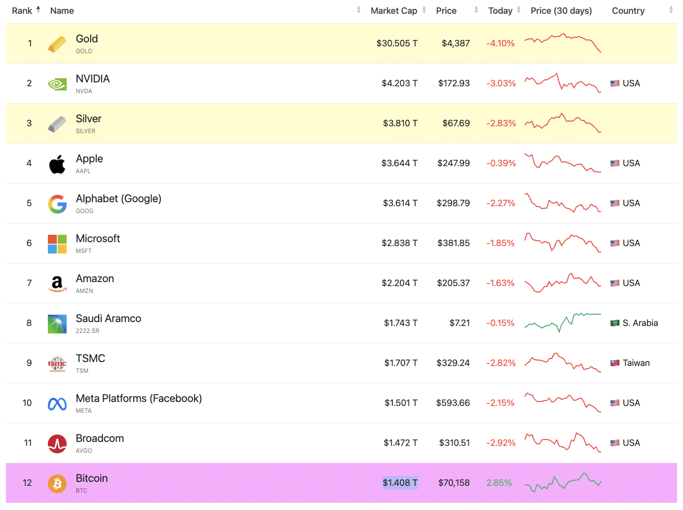不过,从体量来看,黄金依然是绝对巨无霸,市值超过30万亿美元,而比特币大约在1.4万亿美元左右。两者差距仍然巨大,但资金流动的速度正在发生变化。