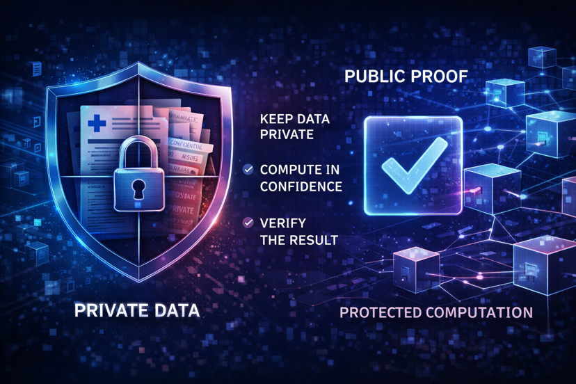 Instead of choosing between verifiability and confidentiality, the goal becomes proving that something is valid without revealing everything underneath.