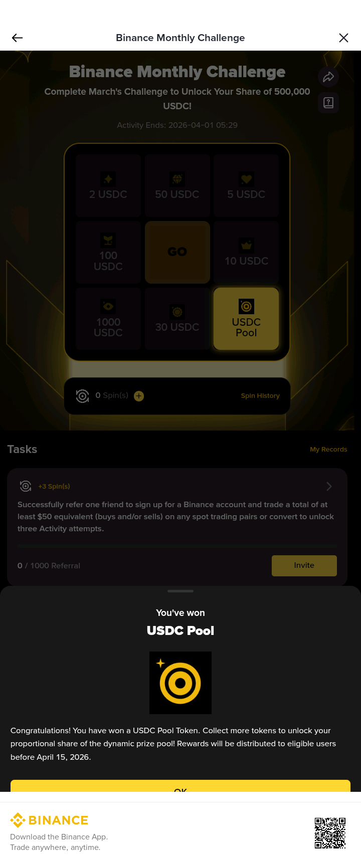 This means I have secured a proportional share of the massive 500,000 USDC prize pool. According to the rules, these rewards will be distributed to eligible users by April 15, 2026. It’s a great feeling to have a guaranteed win coming my way!