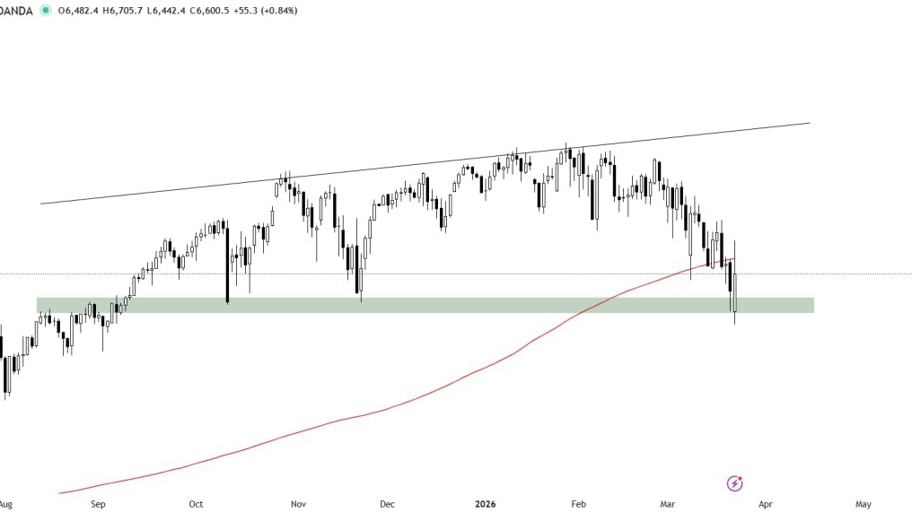 O S&P 500 está se recuperando da zona de demanda horizontal e atualmente enfrenta rejeição na 200MA, que está atuando como uma forte barreira de resistência.