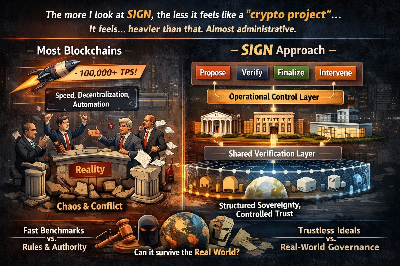 The more I look at SIGN, the more I feel like I’m not really looking at a “crypto project” in the usual sense. It doesn’t try very hard to impress at first glance. There’s no immediate dopamine hit, no clean one-liner narrative you can tweet. It feels… heavier than that. Almost administrative. And oddly enough, that’s what makes me keep reading.