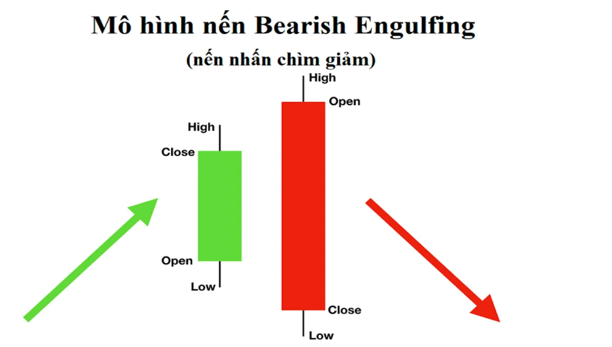 🔶 Bearish Engulfing (Nhấn chìm Giảm) – Cú Đập Tay Của Phe Gấu