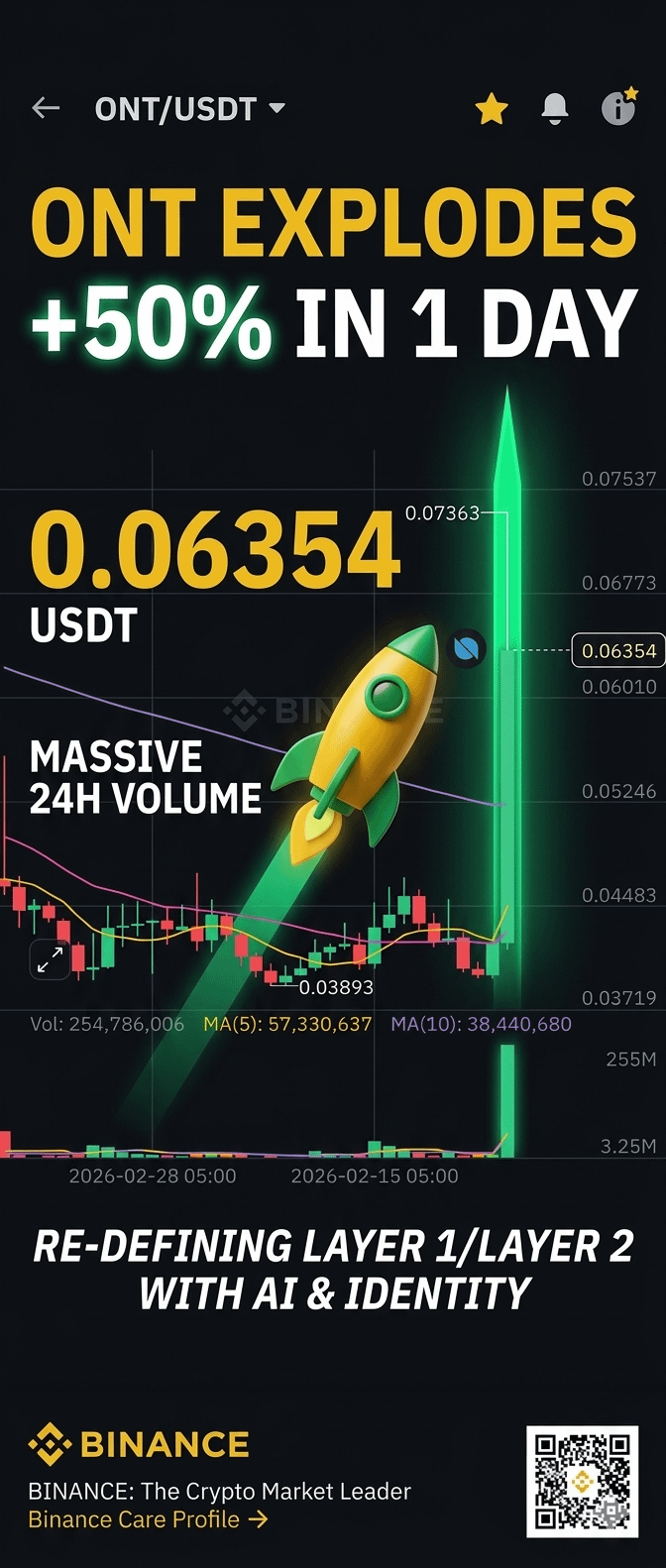 The charts are screaming, and the bulls are officially in control! If you’ve been watching the $ont/USDT pair today, you’ve witnessed a massive vertical breakout. We are seeing a staggering +50.28% pump in a single day, with the price currently sitting at $0.06354.