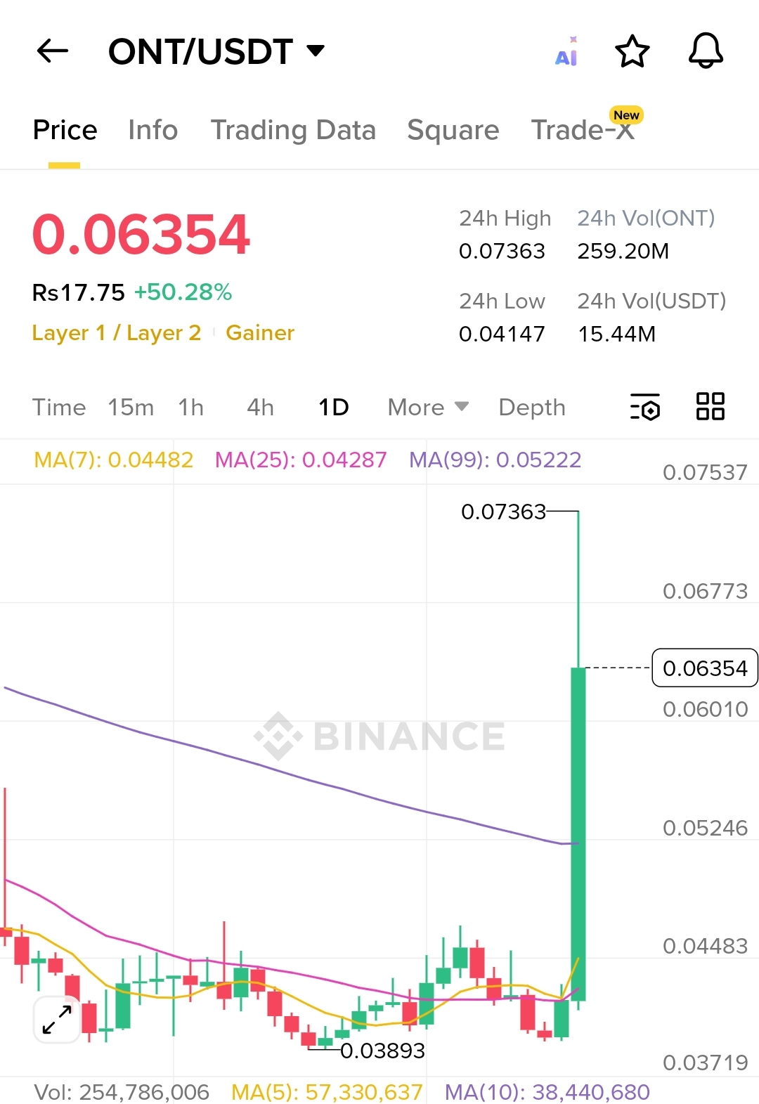 Massive Volume Spike: Look at that volume bar! We just saw a 24h volume of over 259M ONT, worth roughly $15.44M USDT. This indicates heavy institutional or whale entry.
