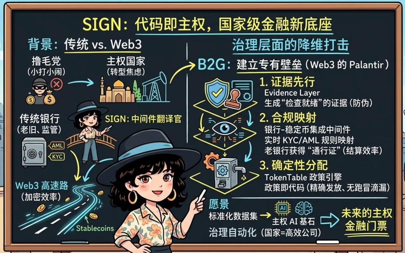 现在的局势很有意思,中东这些主权国家正处在一个极度的“转型焦虑”中。他们不想只做石油的搬运工,他们想把国家整体数字化。SIGN 真正聪明的地方在于,它不指望政府一夜之间变天,而是承认政府的“守门人”地位,通过 B2G(企业对政府)的逻辑,把加密基建变成政府治理的工具。说白了,SIGN 做的不是“反抗者”的游戏,而是“建设者”的升级。