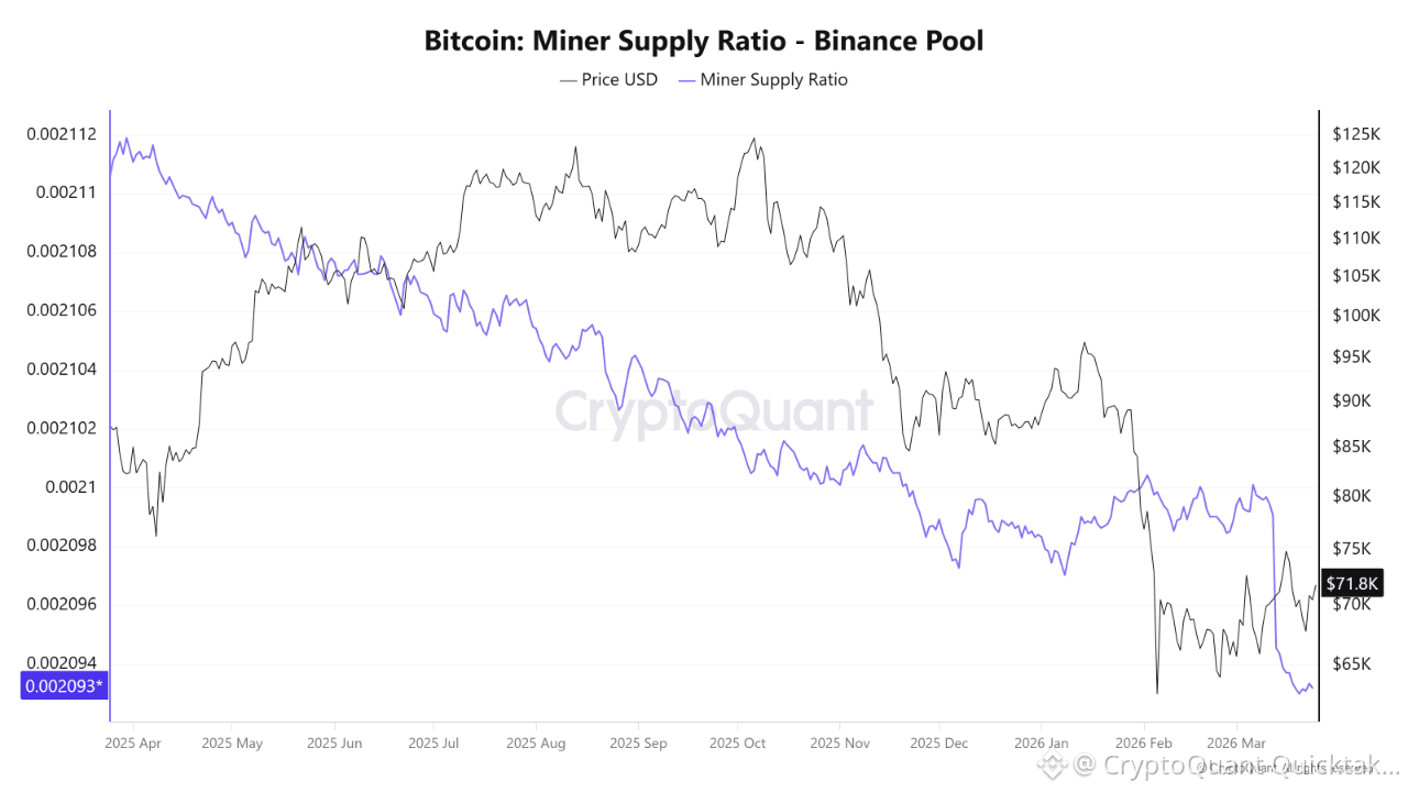 Miners are the only participants consistently generating new BTC supply. A decline in their selling reduces natural spot market supply pressure and can tighten liquidity in the short term.