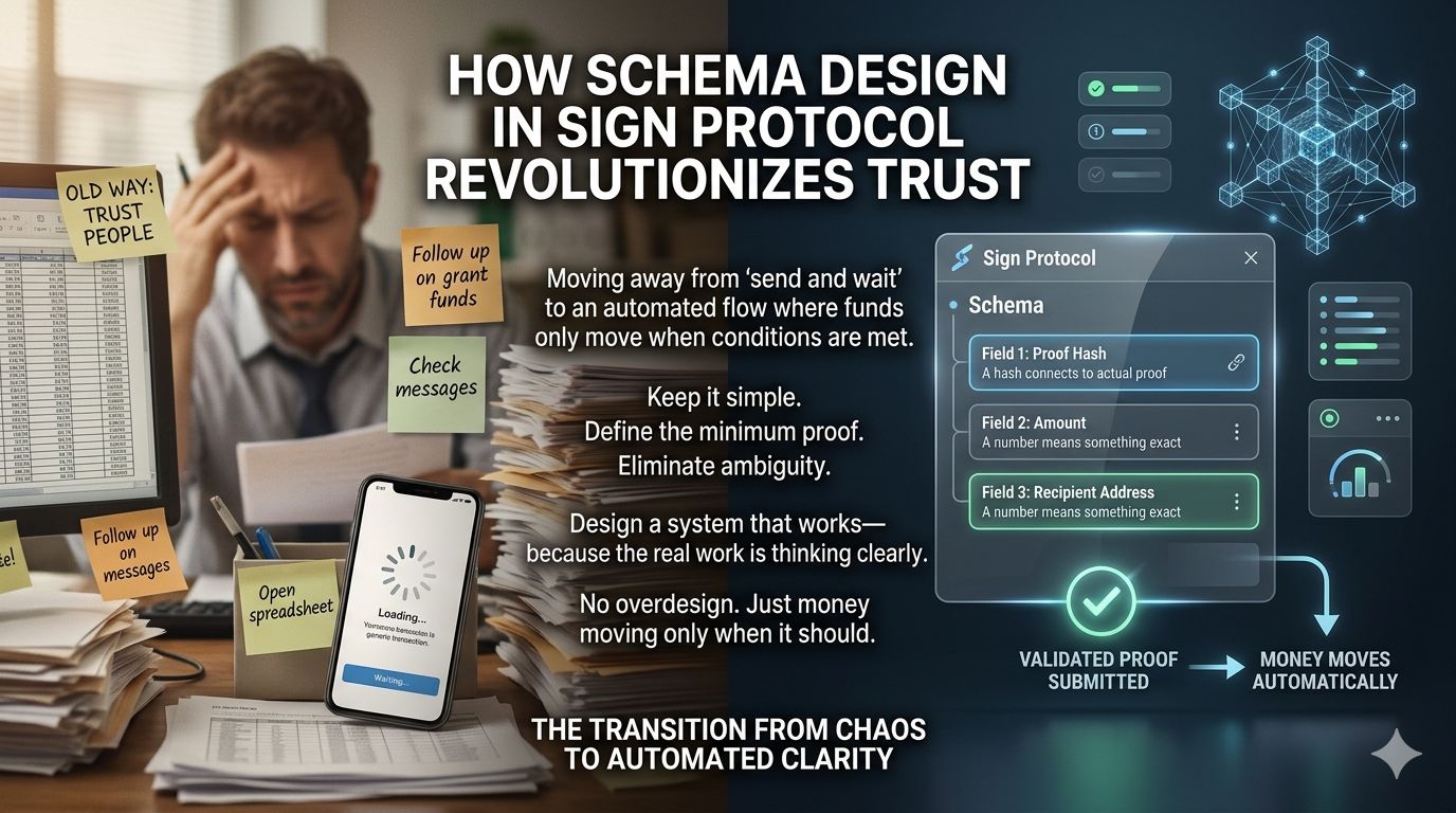 Um esquema é simples, mas força a clareza. É como um formulário rigoroso. Se alguém quiser provar algo, precisa seguir esse formato exatamente. Sem detalhes faltando, sem explicações vagas, sem espaço para interpretação. Apenas dados claros em uma estrutura que um sistema pode entender.