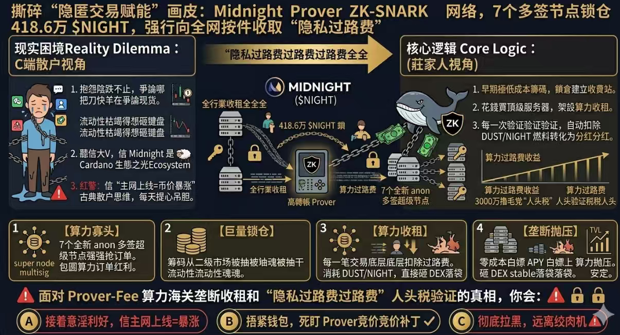 真正高端的局,是利用全网对“隐匿交易”的刚需,强行在 Cardano 和 Midnight 之间,竖起一座只要你想隐身,就必须按件交钱的“算力海关”。