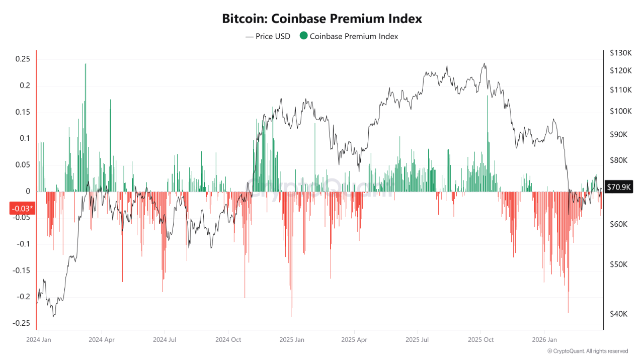 Os dados on-chain apoiam essa tendência. O Prêmio Coinbase tem permanecido instável, sugerindo que a demanda à vista liderada pelos EUA não se recuperou amplamente. Isso indica que, enquanto um grande player específico está apoiando o mercado, a demanda geral carece de profundidade e distribuição.